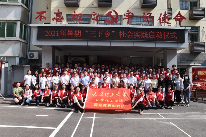 化学化工学院在太原市迎泽街道办事处建立了暑期“三下乡”“七色计划”社会实践基地,并联合太原市迎泽街道办事处进行为期10天的暑期“三下乡”社会实践活动,近百名实践队员分赴迎泽街道15个社区,开展创城入户、疫情防控志愿服务、退役军人志愿服务、环保宣讲、寻访在党50周年党员在内的多项实践项目,以实际行动助力山西全方位推进高质量发展,切实感受中国共产党成立100周年的伟大成就,放飞青春梦想,勇挑使命担当。